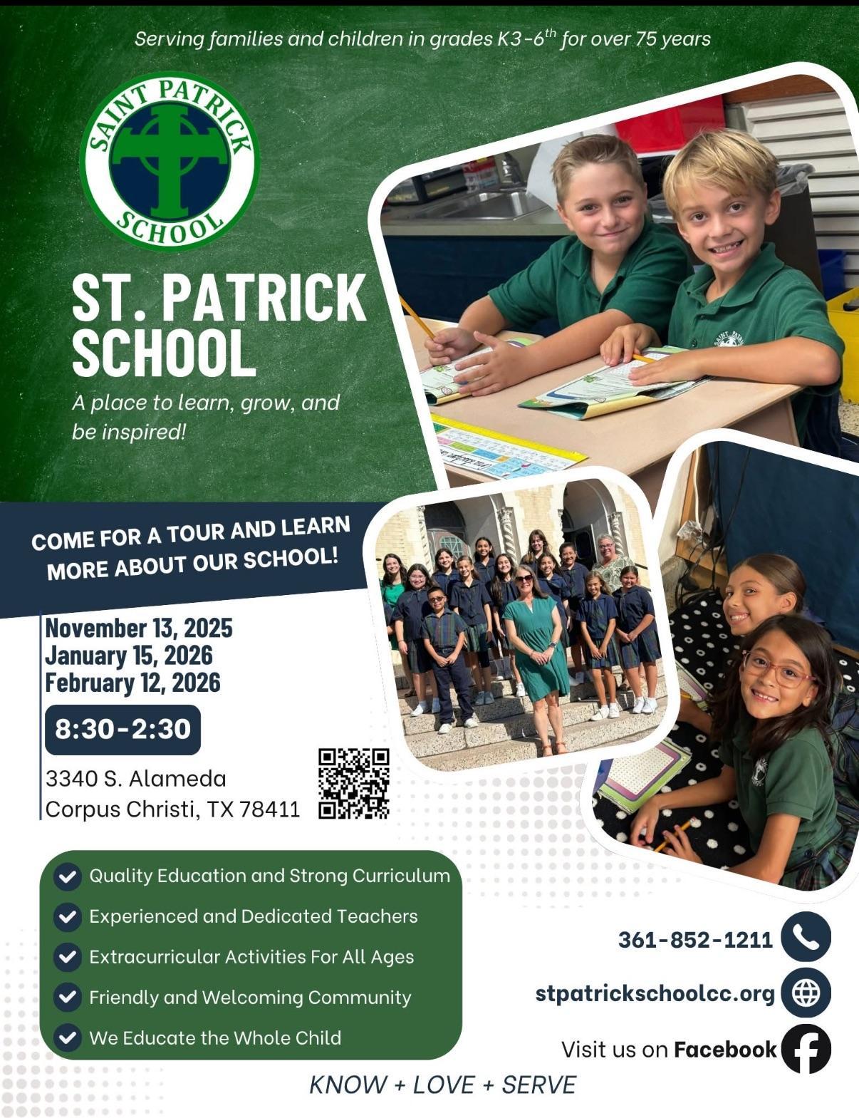 We will give you a tour of the school, introduce you to our faculty and staff and give you more information on the application and enrollment process for the school year. For more information call the school office at 361- 852–1211. *If you are unable to come please call the school office to schedule a tour.